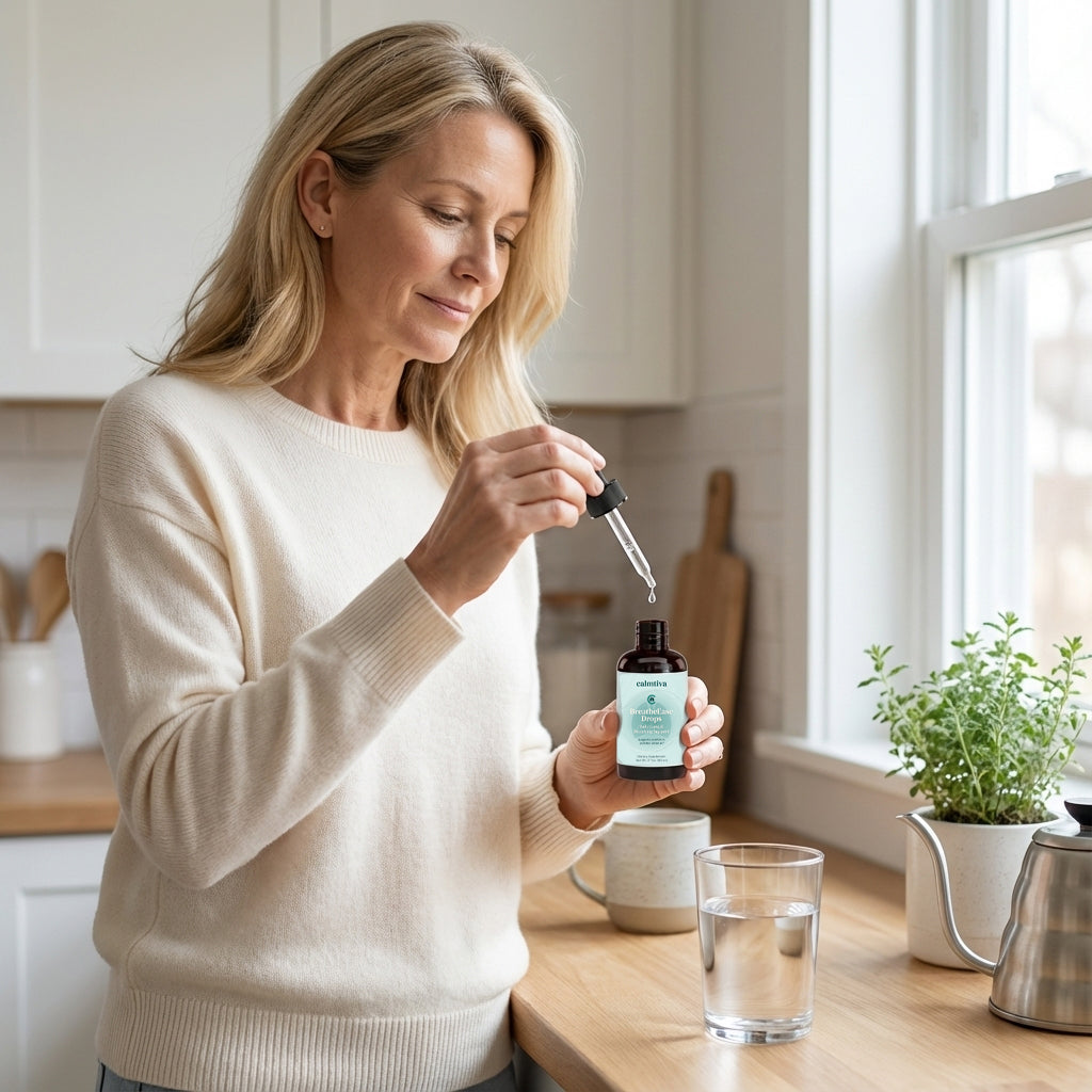 Use the dropper to measure 40 drops (2 ml) once a day. You can drop them directly under your tongue for fast effect, or add them to a small cup of water, tea, or juice if you prefer. Swallow and go — it’s that simple. Taking it in the morning is recommended, but consistency (same time every day) is key.
